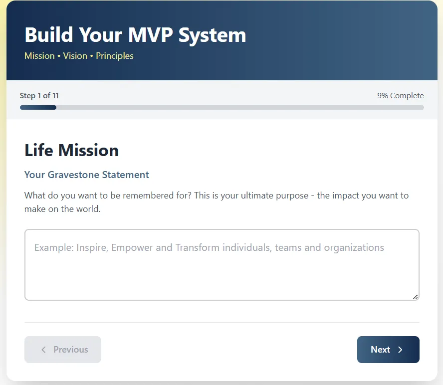 The MVP Framework helps you reconnect to what matters most, define your vision with confidence, and align your daily actions with your deeper purpose — so you can lead and live with greater intention.
